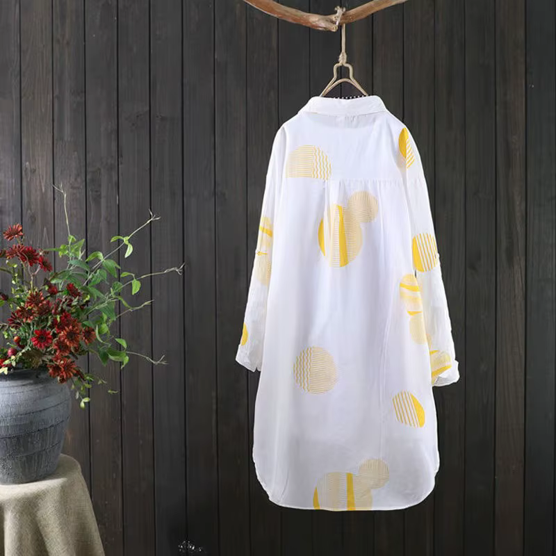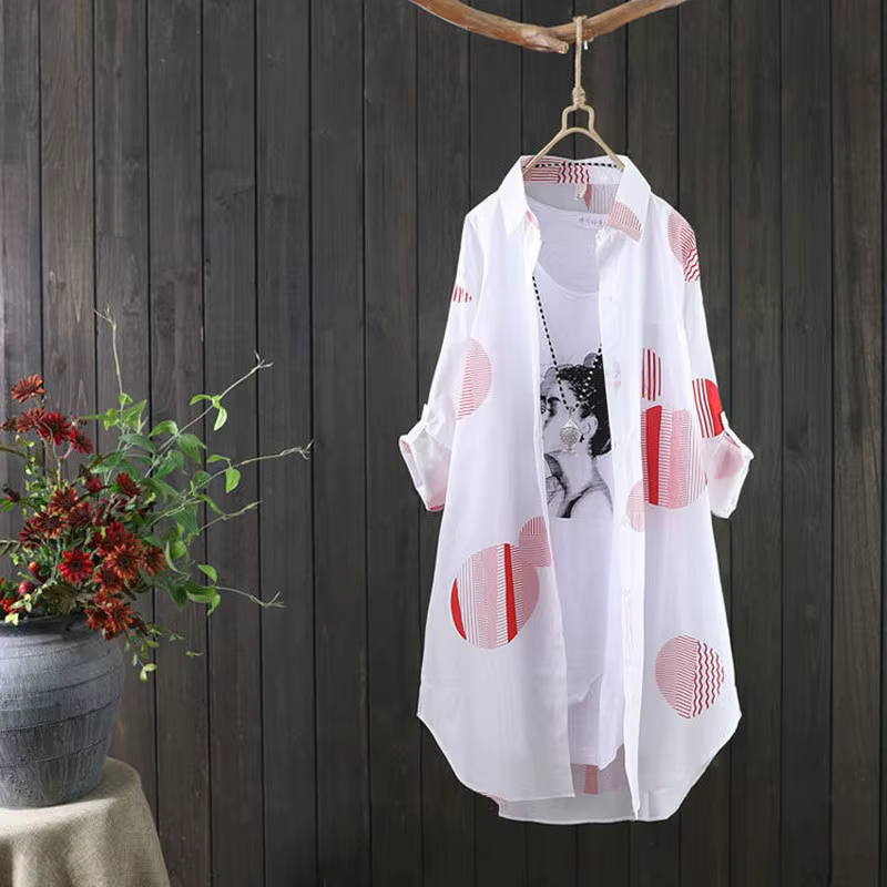 H3035P Camisa informal de gasa para mujer, Top largo medio con estampado de puntos grandes, camisas que caen ligeras, abrigo protector solar, blusas para mujer