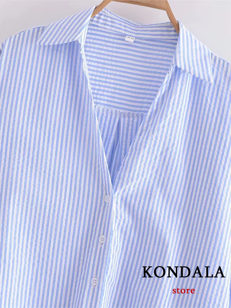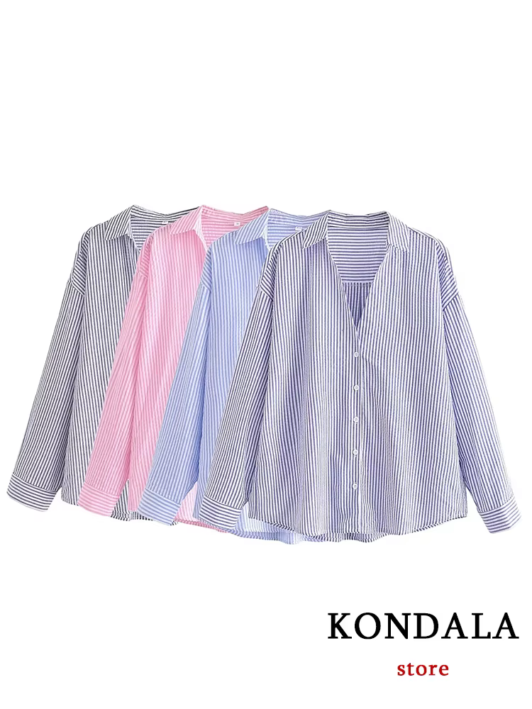 H3043P Camisas informales con estampado a rayas para mujer, Blusa de manga larga con cuello de pico, de gran tamaño, para oficina, a la moda, para verano y otoño