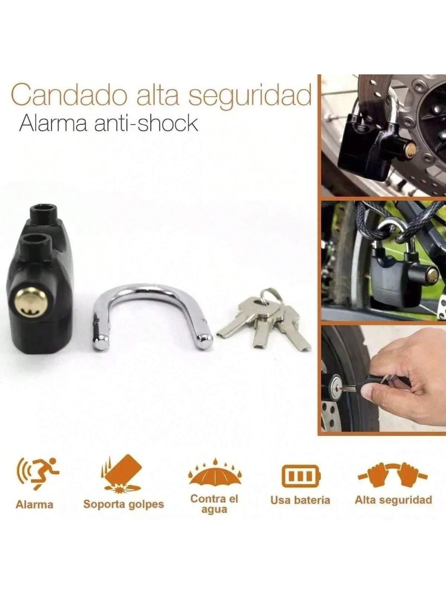 H3122P Candado Grande de Alta Seguridad Con Alarma Sirena Para Moto Bicicleta Antirobo Anti Robo Motocicleta 110db