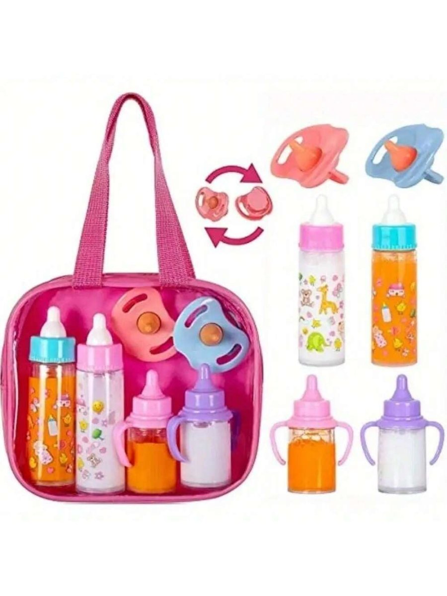 H3454P Conjunto de botellas mágicas para recién nacidos que incluye 1 botella de leche, 1 botella de jugo, 1 chupete de juguete, accesorios para muñecas. Tiene efecto de leche y jugo que desaparece.