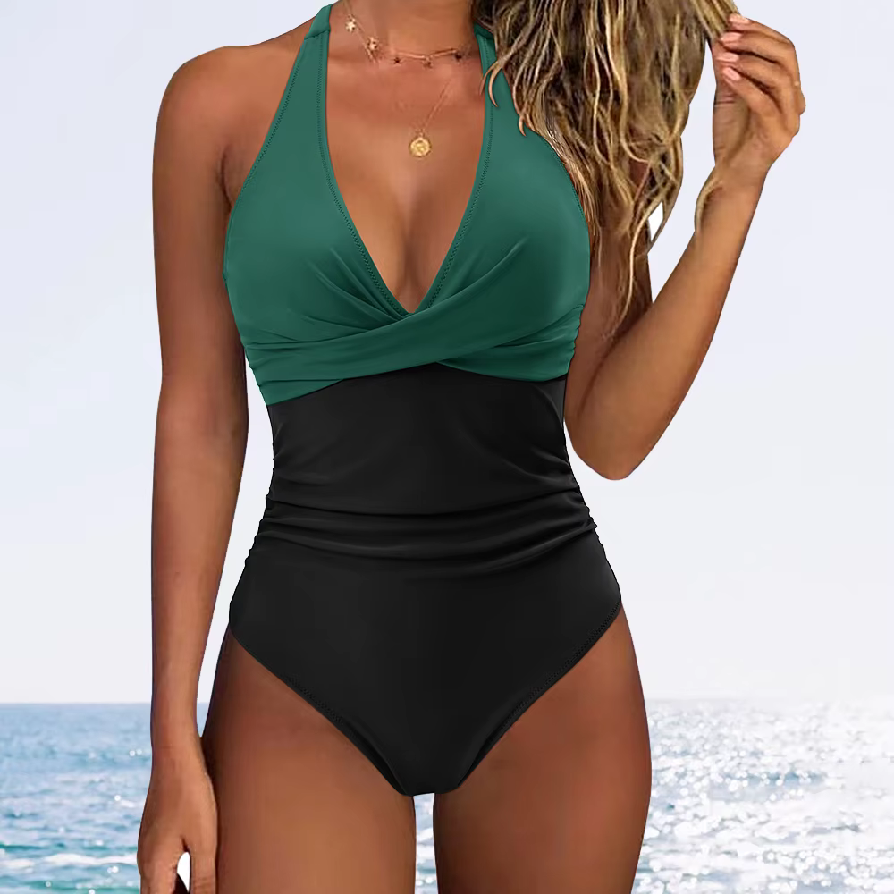 H3524P Conjunto de traje de baño de una pieza para mujer, Bañador estampado con Espalda descubierta, Puch Up, sólido, Sexy, estilo vendaje, fruncido, ropa de playa