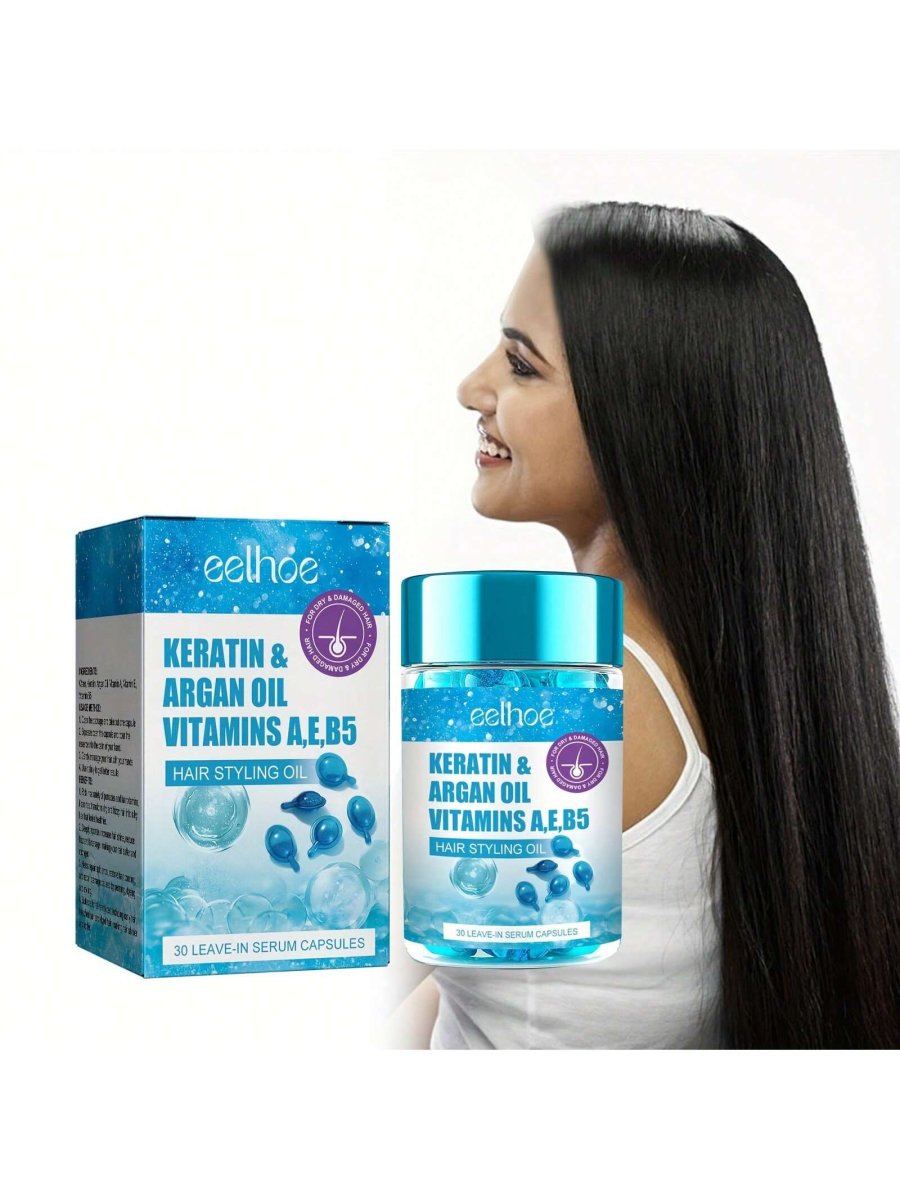 H3645P Cápsulas De Suero Para Dejar En El Cabello, Acondicionador Con Queratina Y Aceite De Argán, Vitaminas A, E, B5. Hidratación Profunda Para Cabellos Secos Y Dañados. Cabello Sano, Desde La Raíz Hasta Las Puntas.