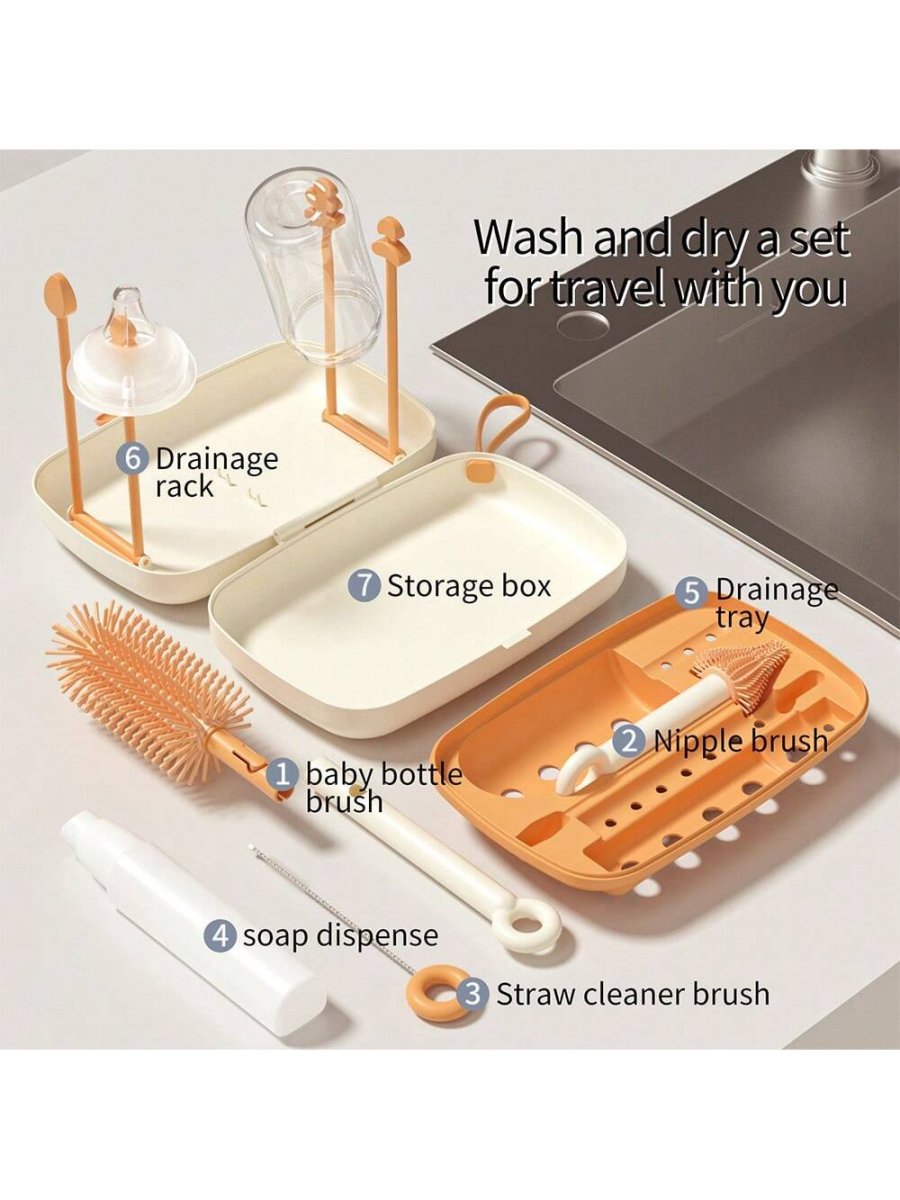H3787P Estante Portátil De Secado Multifunción Cepillo Para Biberones De Silicona Con Juego De Cepillos Para Chupetes Y Pajitas Para Biberones Portátil Para Viajes