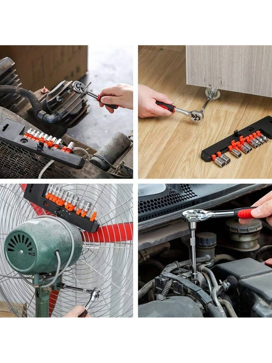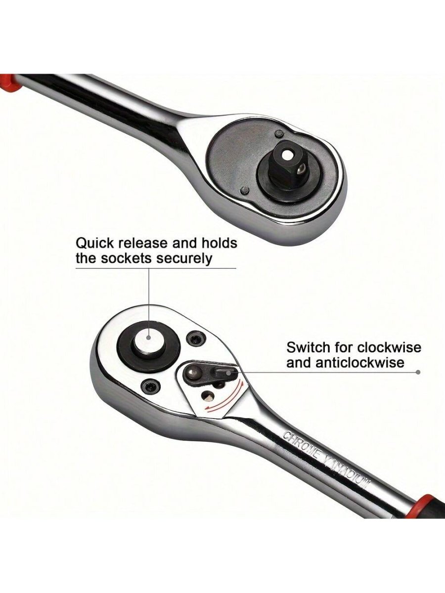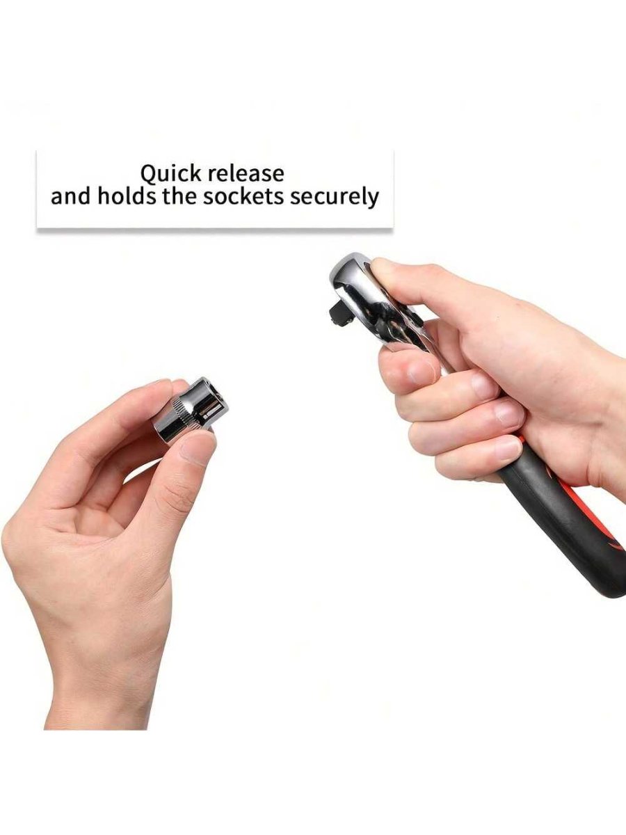 H4192P Juego De 12 Llaves De Tubo, Llaves De Trinquete De 1/4″, 3/8″ Y 1/2″ Para Enchufes De 4-13mm Y 8-24mm Con Liberación Rápida De Doble Sentido De La Manija Y Barra De Extensión