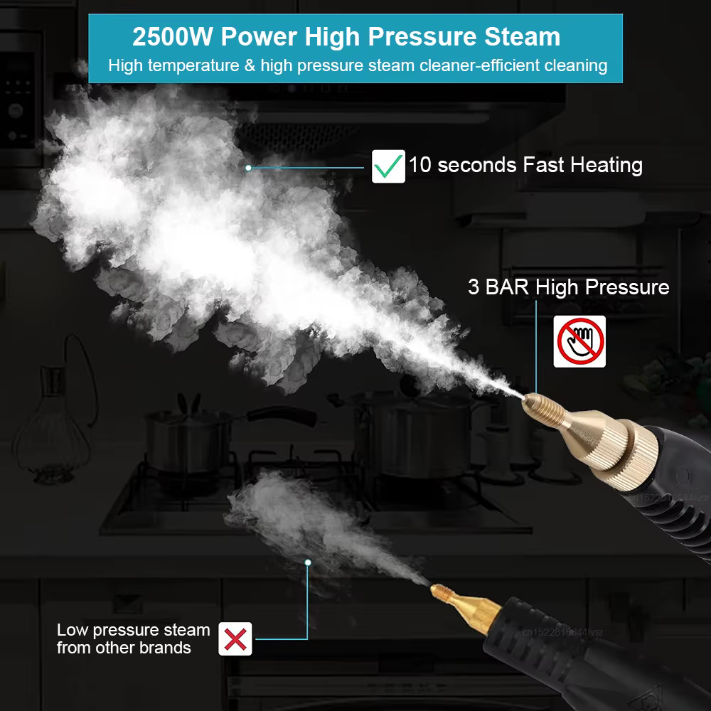 Limpiador de vapor de 2500W, limpiador de vapor de mano de alta presión para el hogar, campana de cocina, coche, esterilización de alta temperatura, Limpiador de vapor