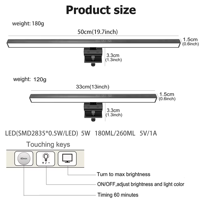 3. Una Luz de monitor de diseño que ahorra espacio, se sujeta a la parte superior del monitor, en comparación con las lámparas de escritorio ordinarias, ahorrando espacio valioso en su escritorio.