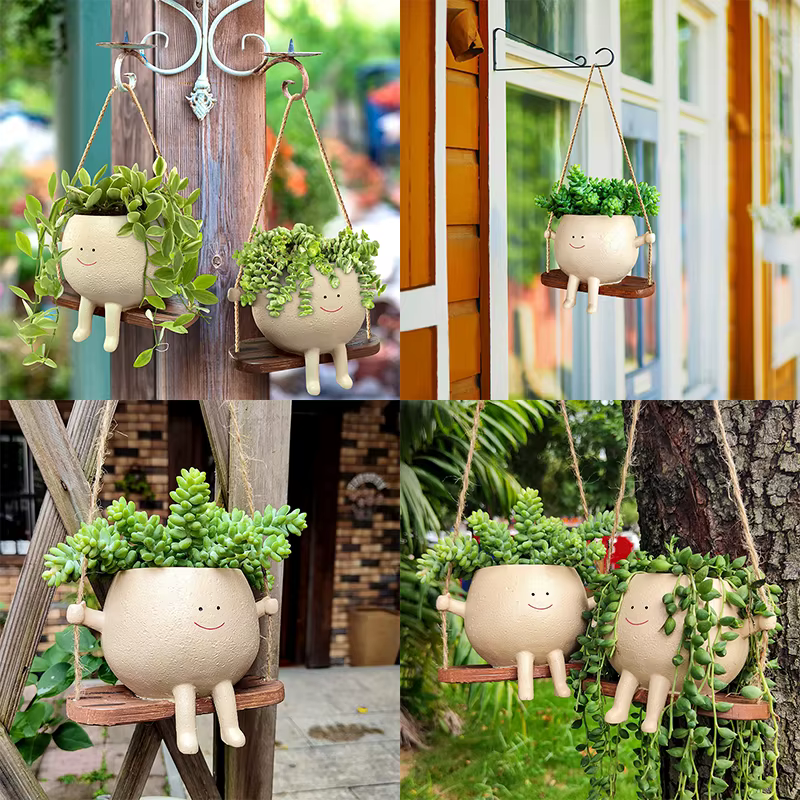 2. Diseño único: con forma de cara de un niño con una expresión sonriente, esta maceta oscilante es una adición encantadora a cualquier jardín o patio.Atrae la atención de los niños e ilumina tu espacio con su aspecto alegre.