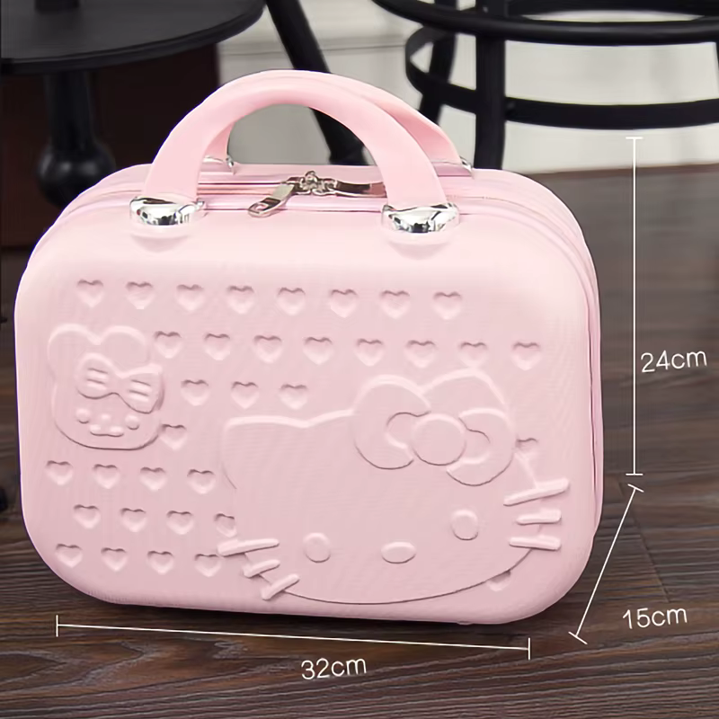 H4579P Maletas y bolsas de viaje, artÃculos esenciales de viaje, versión coreana, lindo estuche de cosméticos de Hello Kitty, Maleta de dibujos animados de 14 pulgadas, 32cm x 24cm