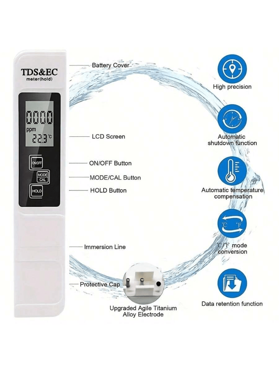 H4671P Medidor De Ph Para Agua, Bolígrafo Digital De Prueba De Ph Para Hidroponía, Medidor De Ph De Alta Precisión 0.01 Para Hidroponía, Agua Potable Doméstica Y Acuario, Con Rango De Medición De Ph De 0-14