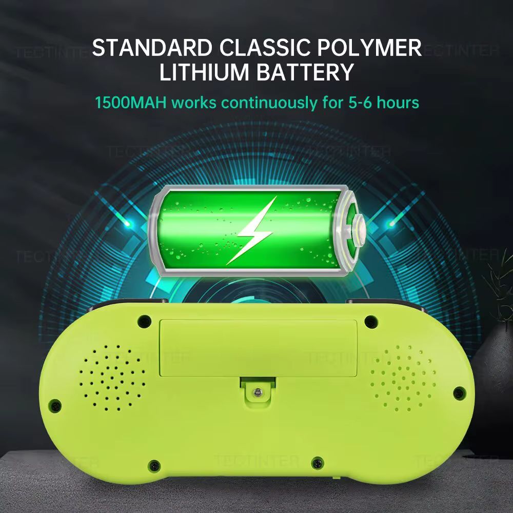 La baterÃa de litio de alta capacidad incorporada de 1500mAh se puede cargar, completamente cargada para soportar 5-6 horas de tiempo de juego. Usted no tiene que preocuparse por la falta de energÃa cuando se va de viaje de negocios, viajes o camping.