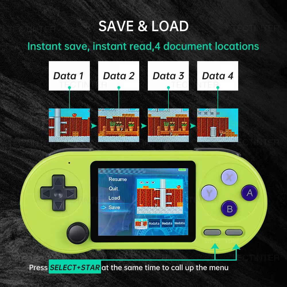 • Pantalla IPS portátil de 3 pulgadas :La consola de videojuegos SF2000 cuenta con una pantalla IPS portátil de 3 pulgadas, proporcionando una experiencia de juego clara y vibrante.