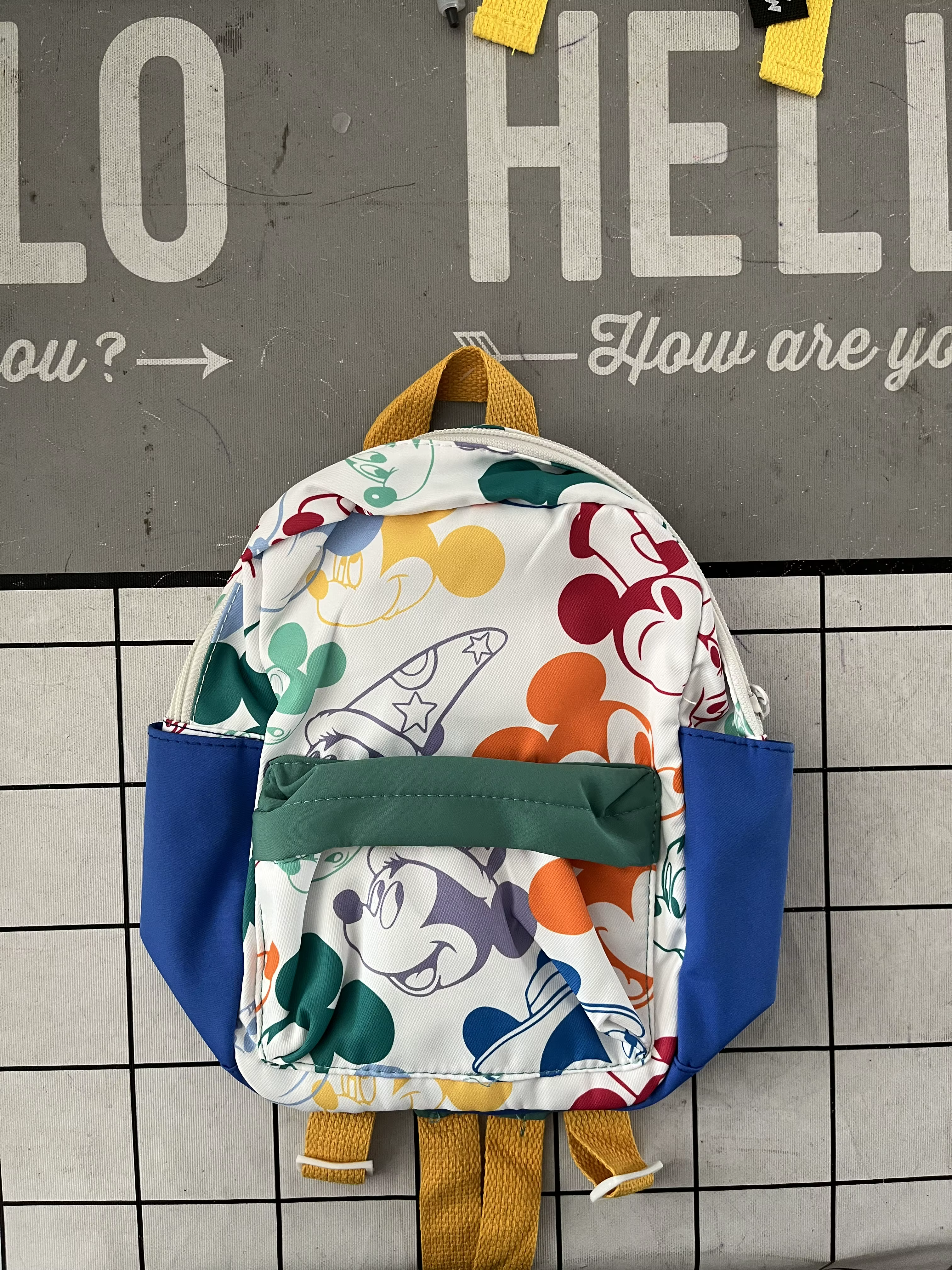 H4795P Mochilas a juego de colores para niños pequeños, nuevo diseño, bolsas salientes de colores, estampado de Mickey Mouse, dos bolsos de hombro con cremallera