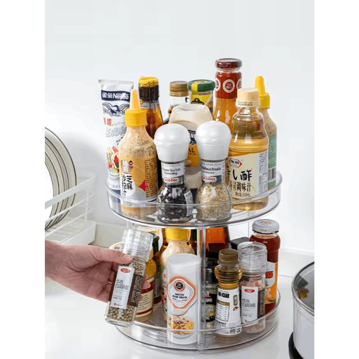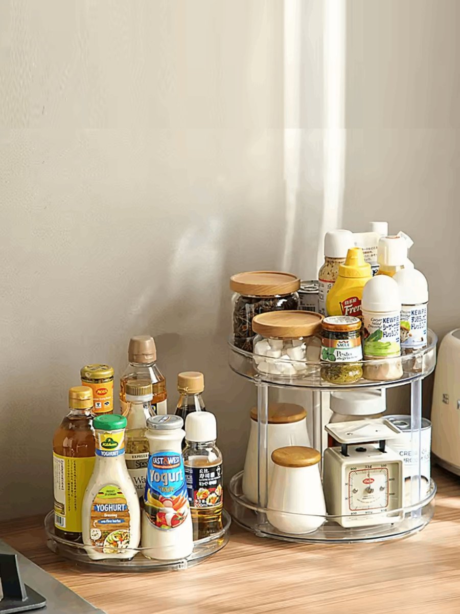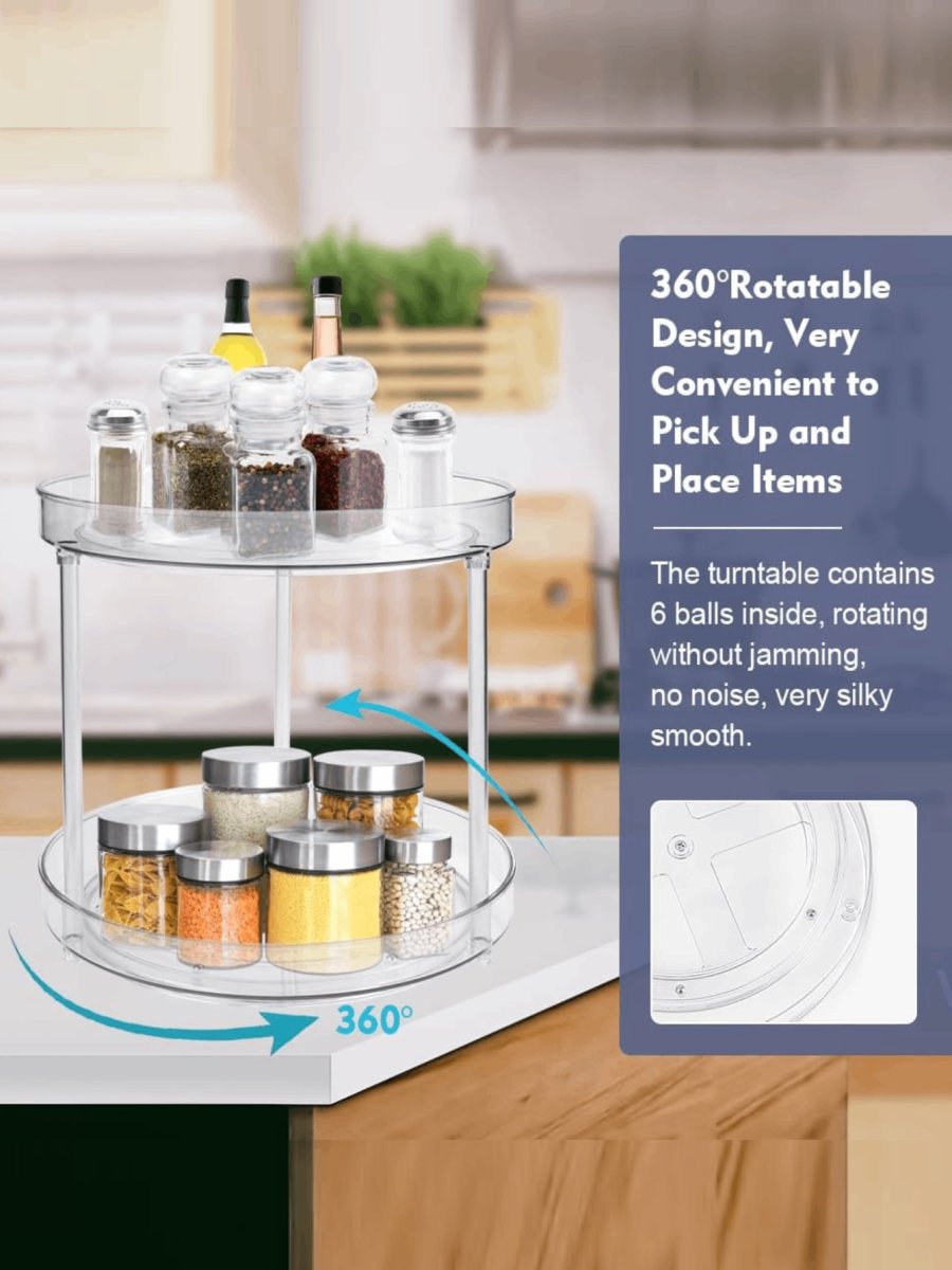 H4950P ORGANIZADOR ESTANTE DE ACRILICO DE ESPECIES PARA 2 NIVELES GRANDE Y CHICO Especiero de Almacenamiento Giratorio de 2 Pisos Organizador de Platos Giratorios Organizador Giratorio de Cocina