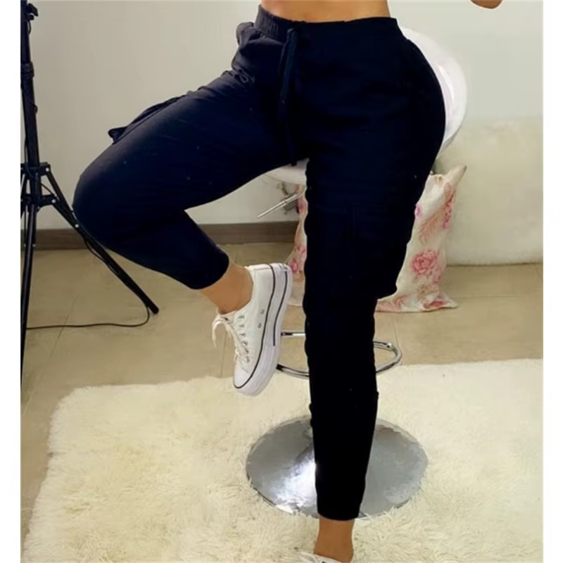 H5032P Pantalones cargo con diseño de cordones y bolsillos a la moda para mujer, ropa informal para mujer, nuevos pantalones ajustados casuales de otoño para mujer