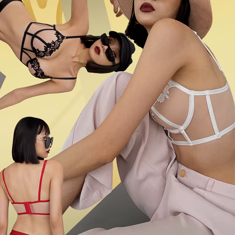 H5420P Ropa interior Sexy de encaje para mujer, Conjunto de sujetador bordado negro, sujetador de realce con escote en V profundo y bragas de cintura alta, lencerÃa ajustable