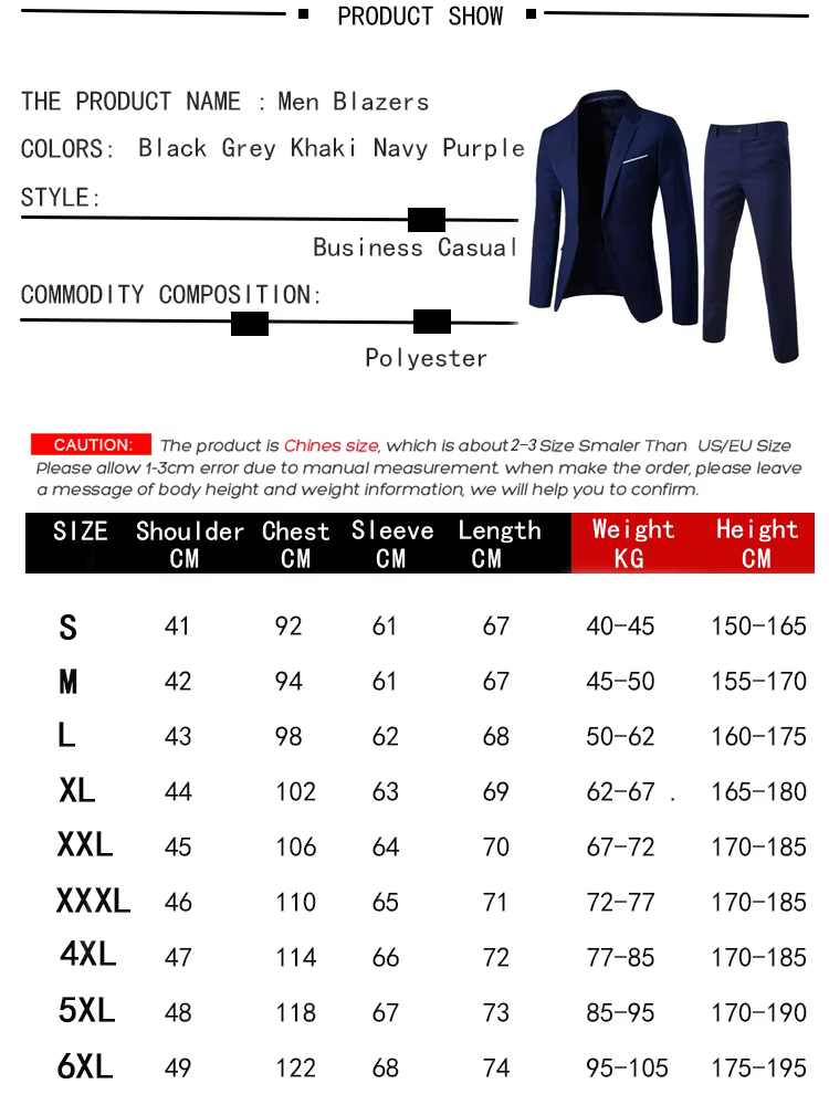 Lo que obtienes: 1 abrigo de hombreChaleco + 1 PC+ 1 pantalón o 1 abrigo para hombre + 1 pantalón para hombre