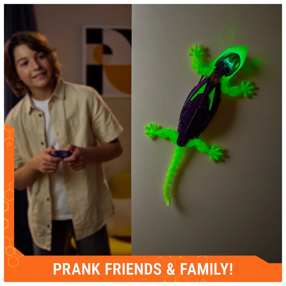 - Glow in the Dark Wall Crawler: ¡Salta arrastrando a tus amigos y familiares con el movimiento realista de la trepamuros del Gecko, con un nuevo brillo en el diseño oscuro! Asuste a su familia y amigos con la vida como movimiento