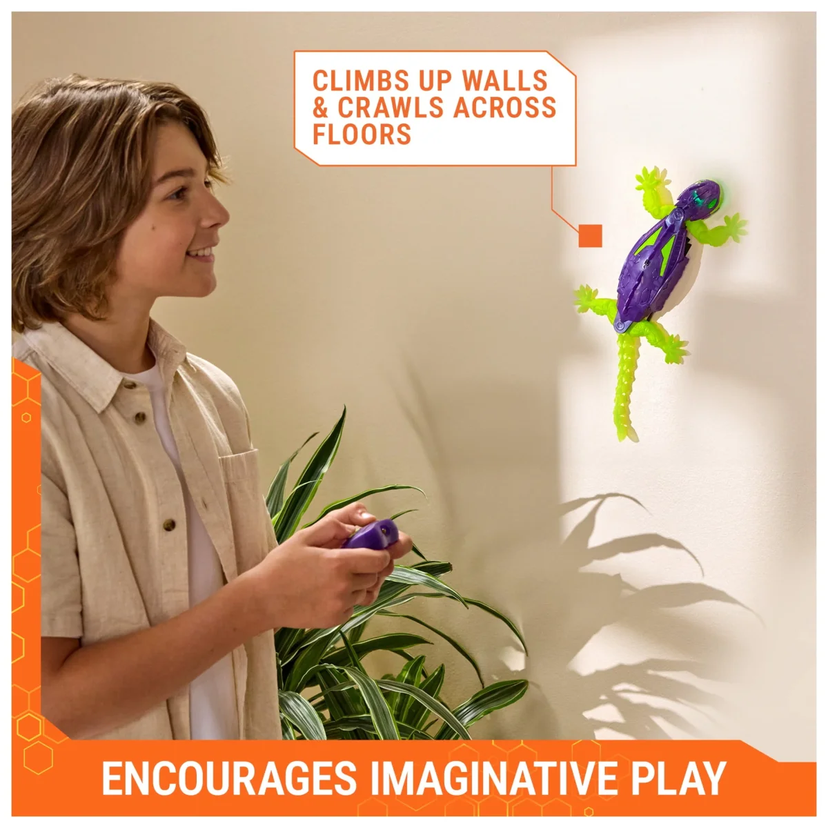 ¡Salga con sus amigos y familiares con el Gecko de oruga de pared HEX BOTS! ¡El divertido y espeluznante Wallcrawler Gecko es más aterrador que nunca con un diseño fresco que brilla en la oscuridad! ¡Este lagarto robot hiperrealista está garantizado para obtener un grito de cualquiera que tenga miedo de insectos o insectos espeluznantes! Observa cómo tu Gecko corre por el suelo y escala las paredes, ¡como un verdadero gecko! Un control remoto de función completa permite un juego intuitivo, ya que puede controlarlo de la manera que desee, ¡y los ojos claros LED hacen que el Gecko Wall Crawler se destaque en la oscuridad! El cuerpo está hecho de plástico duro, con silicona para las extremidades y la cola! Estos juguetes para niños RC vienen con un alcance de 25 pies (8 m), y 1 cable USB está incluido para que pueda divertirse sin fin con los juguetes de rastreo HEX BOTS! Requiere 2 pilas AAA que no están incluidas. Estos robots de juguete de niño son esenciales para su colección de juguetes frescos para niños de 4-6 años. ¡Construye tu colección de figuras de juguete y juegos, juguetes de construcción, juguetes STEM, autos RC y juegos de lucha con robótica HEX BOTS!