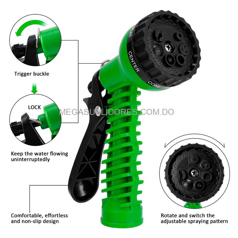 Gracias a la manguera expandible/encogible nuestras labores del hogar se facilitan mucho más ya que nos ahorramos tiempo al guardarla, en lugar de tener que enroscar sección por sección, también nos evita la molestia de otras mangueras que se enredan o se doblan y ya no sale agua, es muy fácil de transportar a cualquier lugar gracias a su peso tan liviano, hasta un niño la puede cargar sin problema. Este es un novedoso producto para tu hogar una manguera que se expande 3 veces lo de su tamaño original.