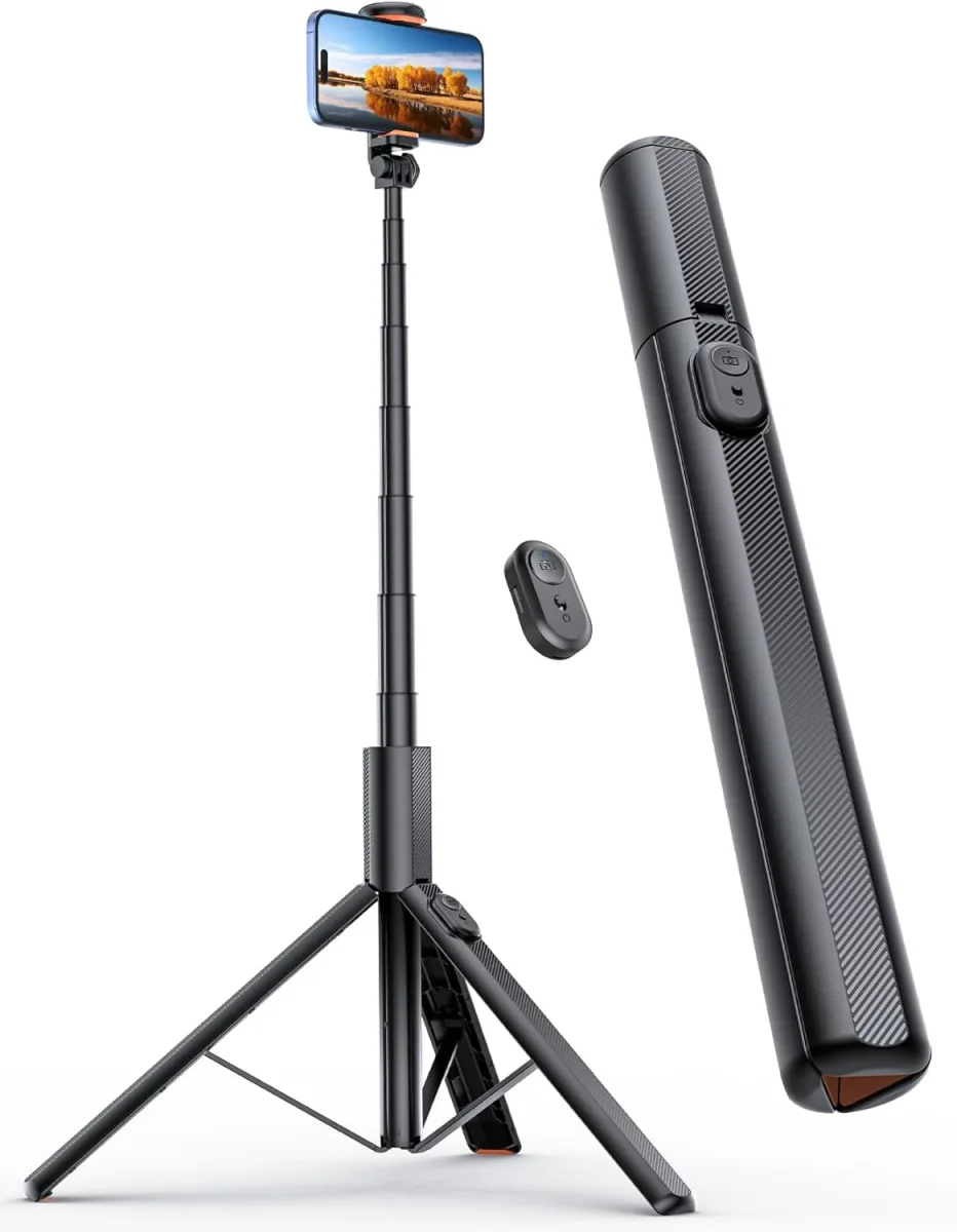 Altura extra alta de 71 pulgadas para una visión más amplia: el soporte de trÃpode para teléfono de 71 pulgadas te permite capturar ángulos perfectos que los trÃpodes regulares no pueden alcanzar. Ya sea que estés de viaje, en una reunión familiar o disfrutando de actividades al aire libre, este kit de fotos y video para selfie stick te garantiza una visión más amplia y tomas más claras. El diseño compacto del trÃpode del teléfono para grabación de video lo convierte en el trÃpode perfecto para el teléfono cuando viajas, ofreciendo un fácil almacenamiento y portabilidad.