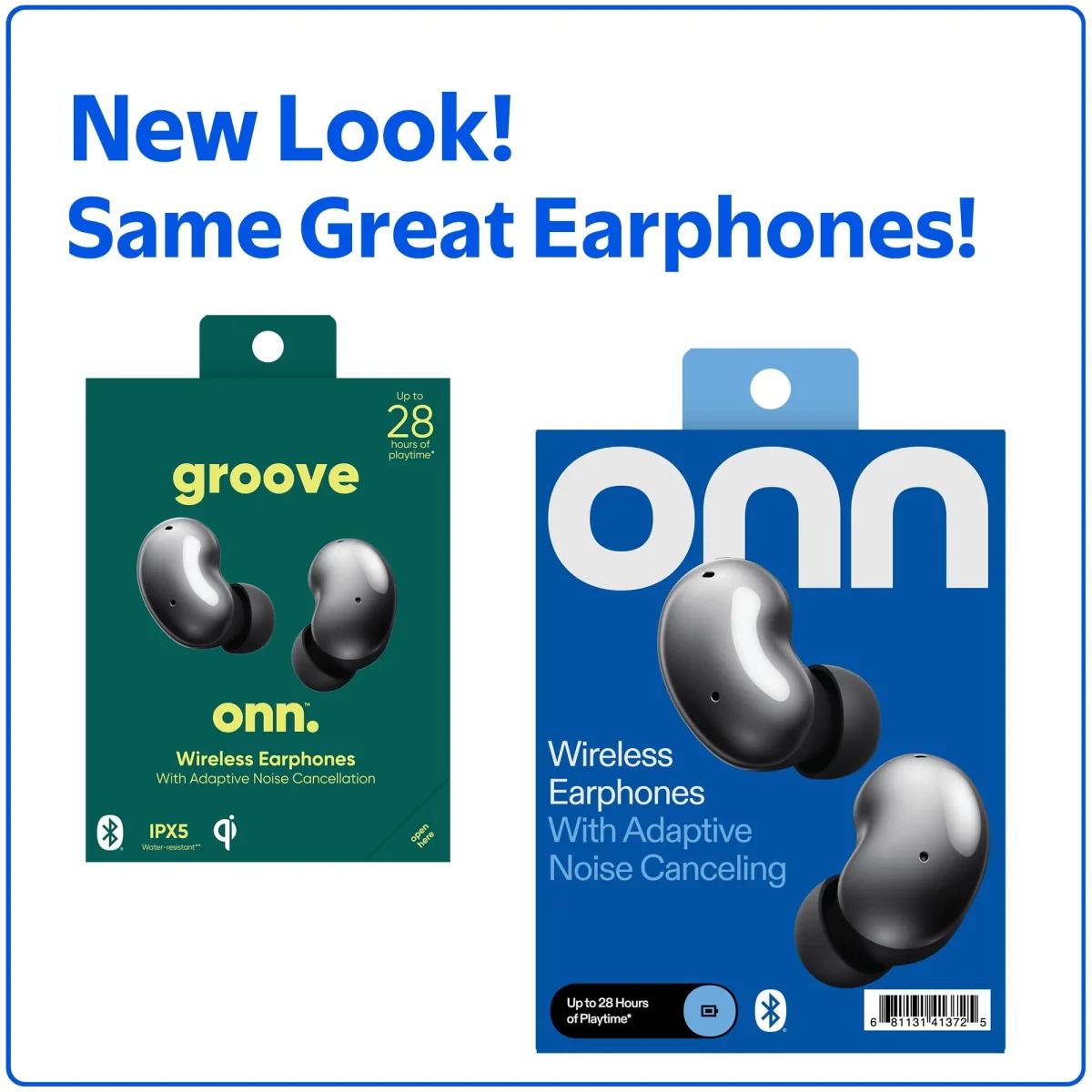 - onn. Auriculares inalámbricos con cancelación de ruido adaptable y estuche de carga, negro