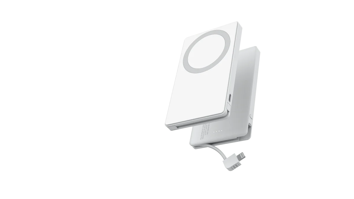 La baterÃa portátil onn de 5.000 mAh con cable Lightning incorporado, MFI Certified, Mag-Attach Ring, White es una solución de energÃa elegante y versátil para los usuarios de Apple. Con un cable Lightning incorporado y un anillo magnético para la alineación MagSafe, se conecta fácilmente a los iPhones compatibles para una carga sin problemas. La capacidad de 5.000 mAh ofrece energÃa de respaldo confiable, mientras que la certificación MFI garantiza un rendimiento seguro y confiable. Manténgase cargado con la baterÃa portátil onn 5,000 mAh con cable Lightning incorporado, certificado MFI, anillo de fijación magnética, blanco.