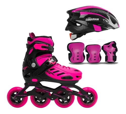 Patines en lÃnea de uso semiprofesional, recreativo e iniciación, bota en pasta de alta calidad que lo hace más resistente a golpes o rozaduras, acolchado interior. El sistema de ajuste por tallas permite prolongar su uso con el crecimiento del usuario. Cuentan con cuatro ruedas de 90MM. Chasis profesional que permite usarlo con tres o con cuatro ruedas de 100MM, Se sugiere seleccionar 2 tallas más de las que usa en calzado normal.