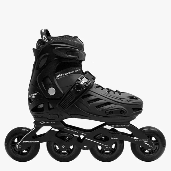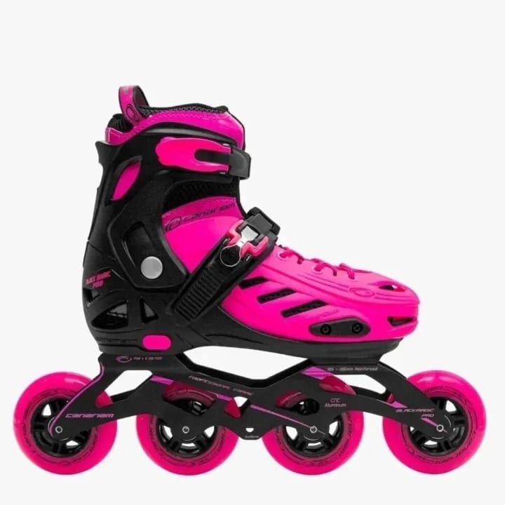 Patines en lÃnea de uso semiprofesional, recreativo e iniciación, bota en pasta de alta calidad que lo hace más resistente a golpes o rozaduras, acolchado interior. El sistema de ajuste por tallas permite prolongar su uso con el crecimiento del usuario. Cuentan con cuatro ruedas de 90MM. Chasis profesional que permite usarlo con tres o con cuatro ruedas de 100MM, Se sugiere seleccionar 2 tallas más de las que usa en calzado normal.