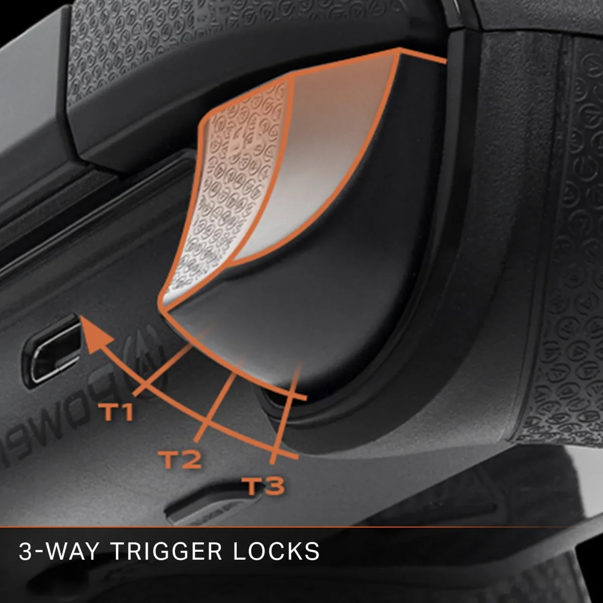 - 3-Way Trigger Locks: establece la distancia de viaje de los gatillos con tres posiciones diferentes para realizar acciones más rápidas en tus juegos favoritos de FPS o acelerar a toda velocidad en un auto de carreras de alta gama.