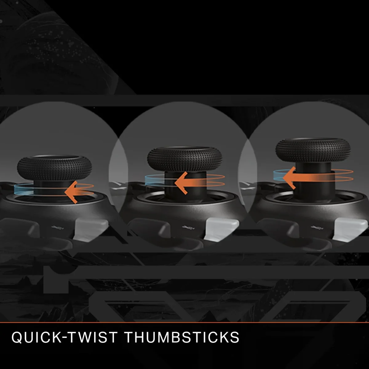 - Pulgarcitos de giro rápido: ajuste fácilmente la altura de cada pulgar en medio de un juego con un simple giro: no es necesario intercambiar partes. Tres ajustes de altura para cada pulgar te permiten personalizarlos según tu estilo de juego