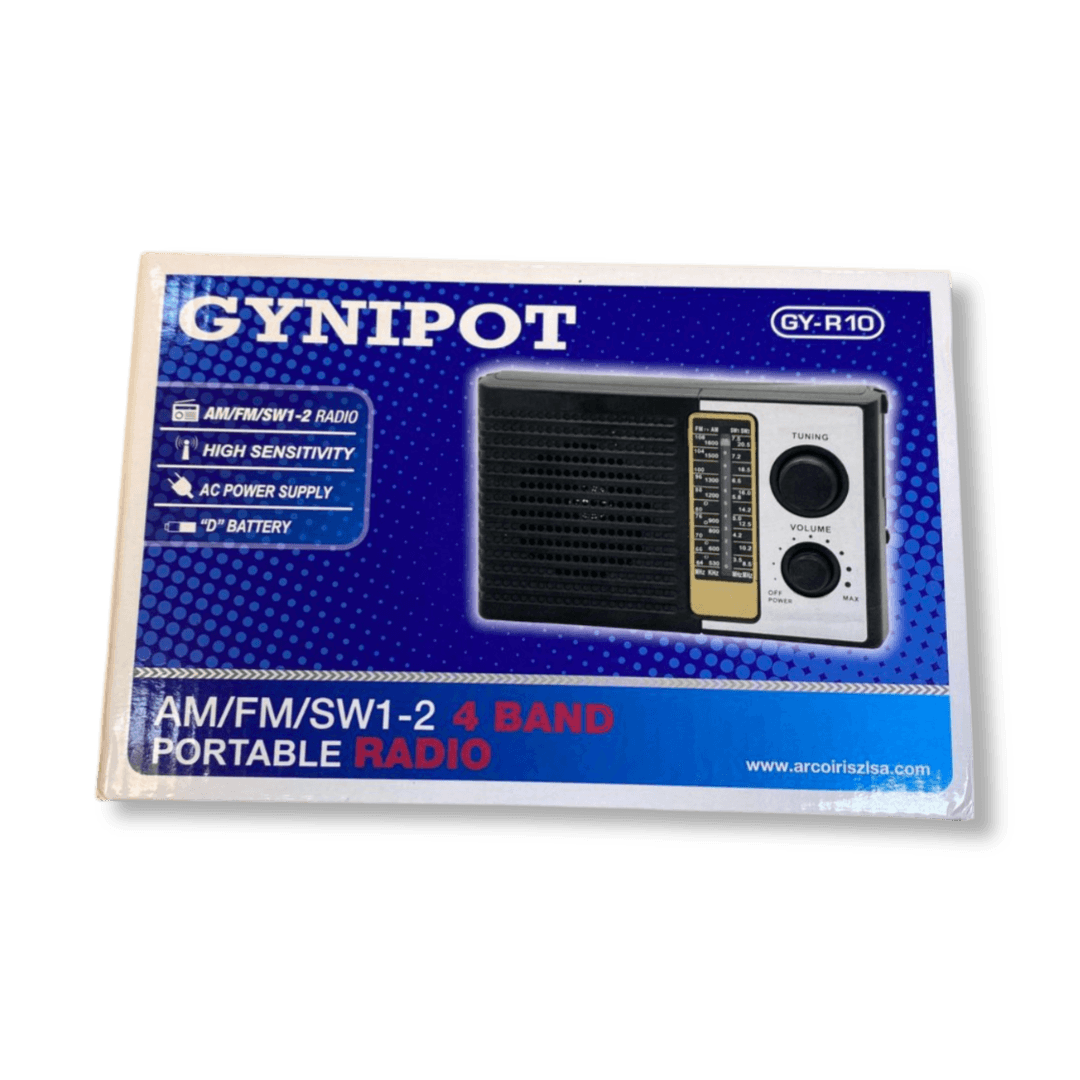 La Radio Portátil GYNIPOT GY-R10 es perfecta para quienes buscan una opción versátil y confiable. Con capacidad para sintonizar 4 bandas (AM/FM/SW1/SW2) y una estructura compacta, es ideal para el hogar, oficina o actividades al aire libre.