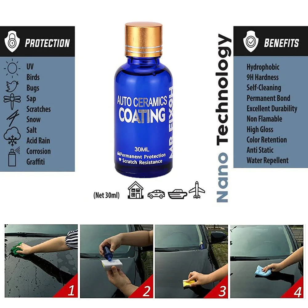 - Contenido: 30 ml (suficiente para un recubrimiento completo en vehÃculos pequeños o medianos).