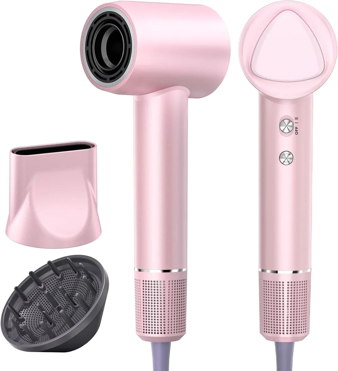 Estilo versátil: nuestro secador de pelo incluye un difusor y boquilla para ayudarte a lograr diferentes efectos de peinado. El difusor es ideal para cabello rizado u ondulado, ya que distribuye el flujo de aire de manera uniforme, mejorando los rizos naturales y reduciendo el encrespamiento para rizos voluminosos y voluminosos. La boquilla concentradora enfoca el flujo de aire, por lo que es perfecta para alisar o peinar con precisión, creando acabados suaves y elegantes con brillo añadido. Ya sea para rizos o estilos rectos, estos accesorios ofrecen opciones de estilo flexibles.
