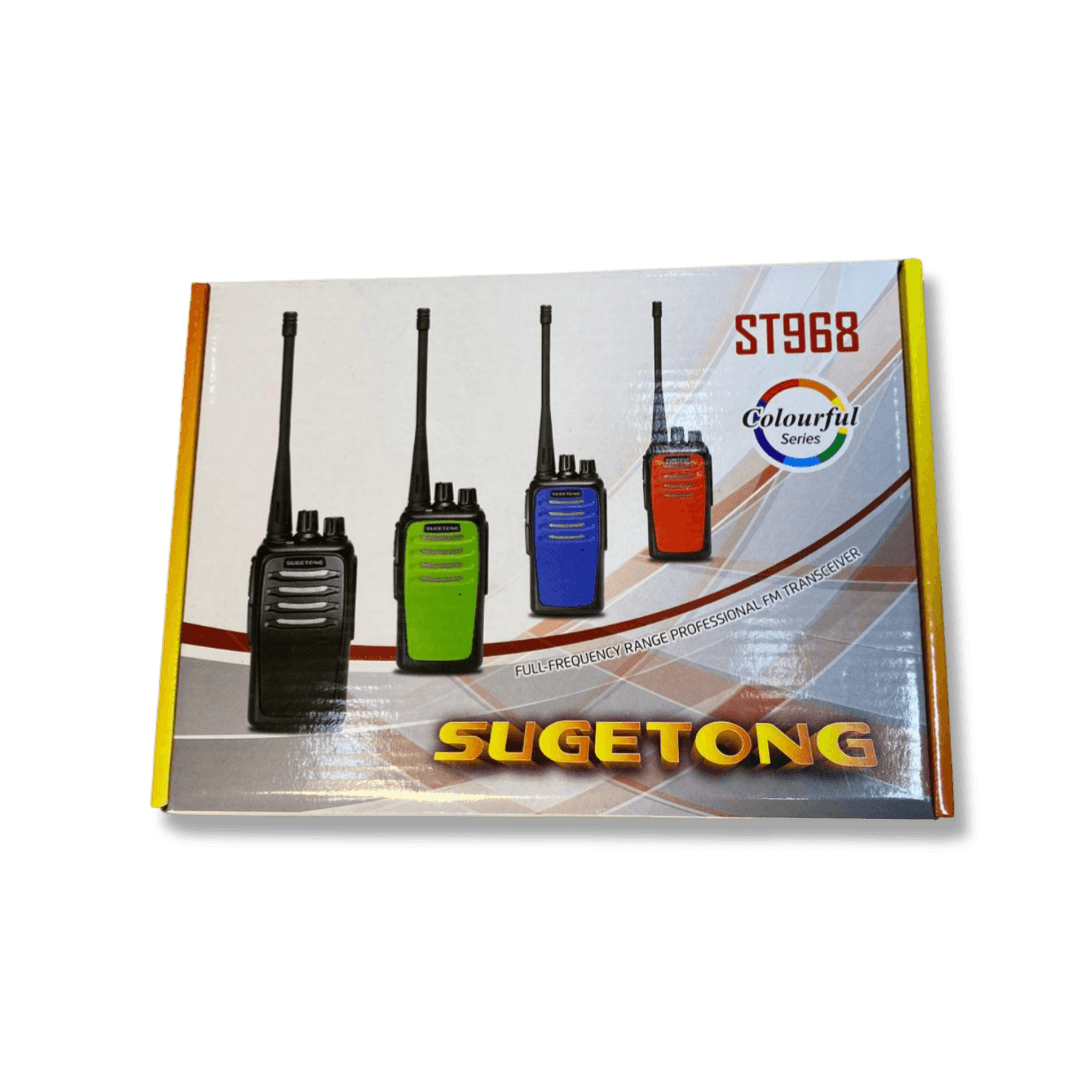 El Walkie Talkie Sugetong ST968 Colourful Series es la opción ideal para profesionales y actividades al aire libre. Su diseño moderno y variedad de colores lo convierten en una herramienta funcional y visualmente atractiva para mantenerse conectado en todo momento.