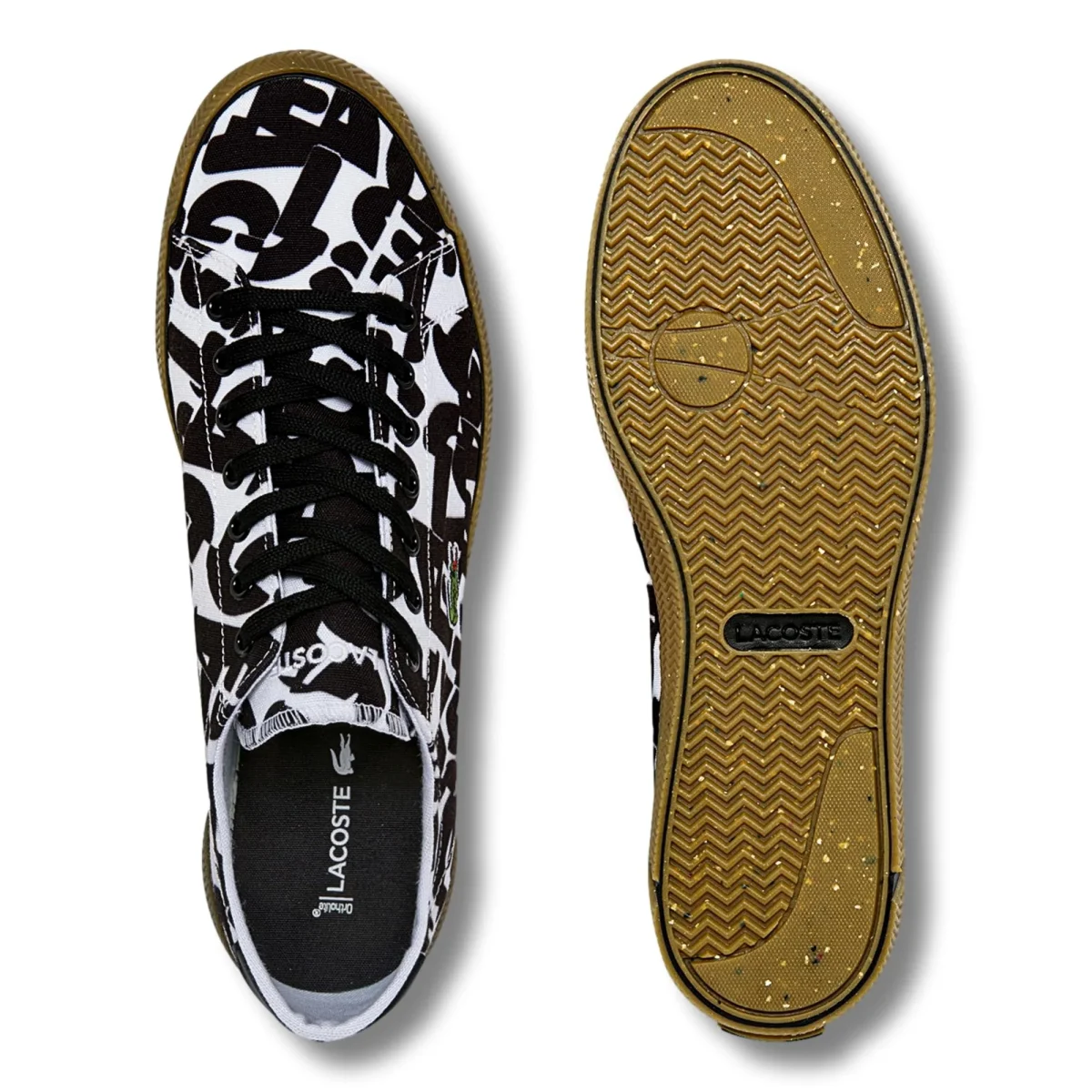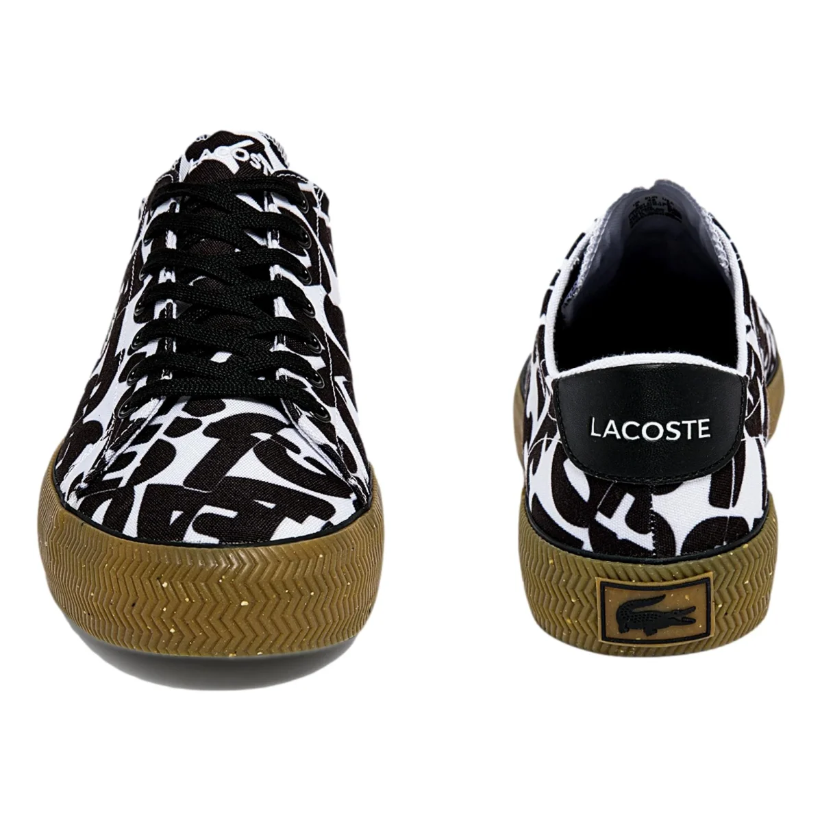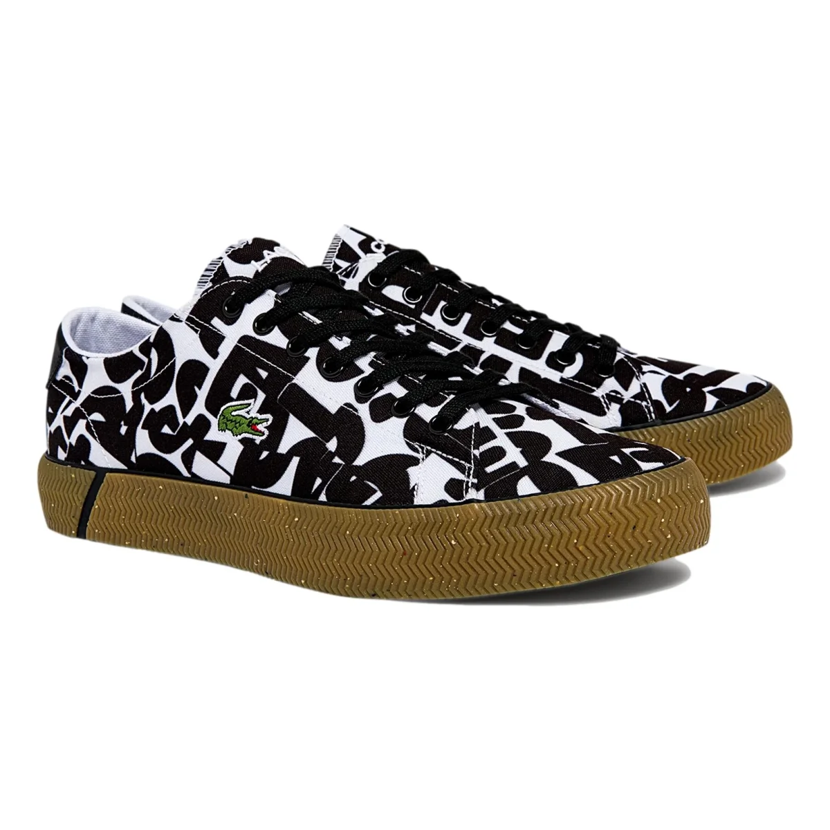 El estampado gráfico allover en el empeine evoca el armario de Lacoste