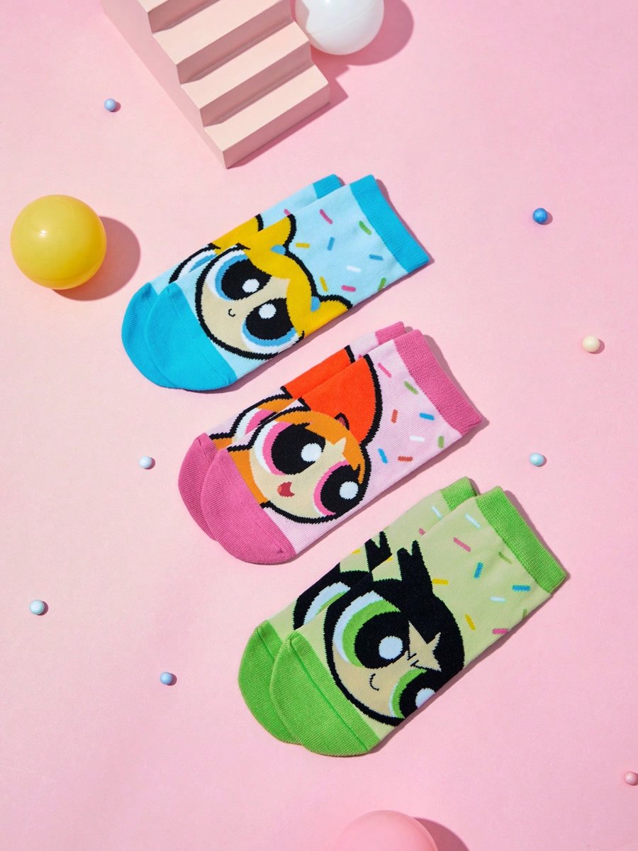 H5784P THE POWERPUFF GIRLS X SHEIN Calcetines cortos para niños, 3 pares