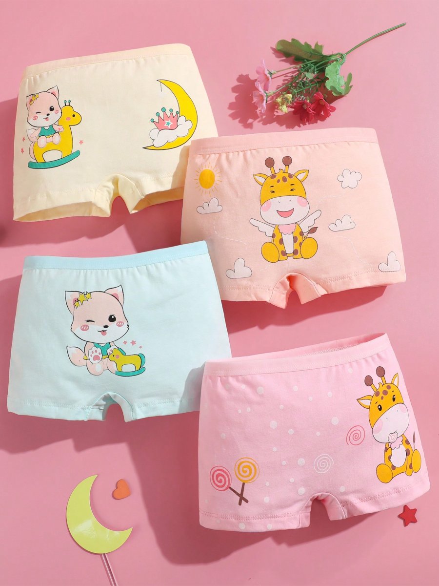 H5086P Paquete de 4 piezas de braguitas cómodas y suaves para niñas con estampados de dibujos animados