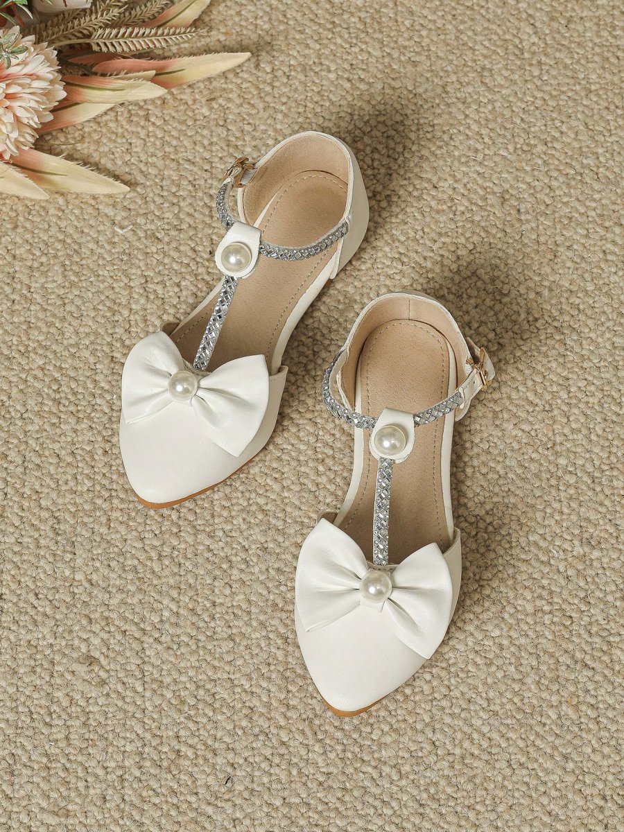 H6265P Zapatos Planos Infantiles Para Niña, Blancos Con Perlas De Moda Para Fiestas